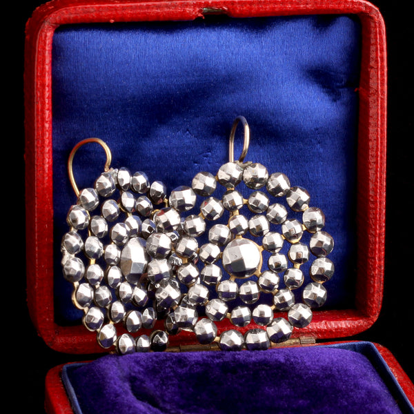 CONDITION: Very good - newer ear wires, these earrings were probably elements of a larger piece of cut steel jewelry