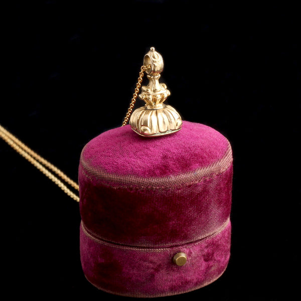 An early 19th century wax seal fob with an amethyst intaglio depicting a thistle beneath the words “Dinna Forget”. "Dinna" - the Scottish dialectical spelling of "don't" - is both charming and also very likely a patriotic statement. This piece would have been impressed in hot wax to form a seal on correspondence way back in the days before postage stamps and self-adhesive envelopes.