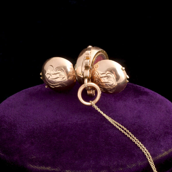 SIZE: 1 1/4" length including the bale, 3/4" at the widest point, 1/2" diameter locket, 18" chain